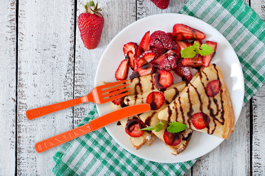 DecorRack Plastic Cutlery Set, Orange Colored Plastic Silverware Sets for Parties, 96 Piece Bulk Heavy Duty Utensils (Orange, 96 Pieces)