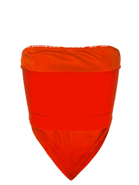 Design by Olivia Women's Sexy Paisley Print/Solid Bandana Tube Crop Top Shirt- Made in USA Orange S