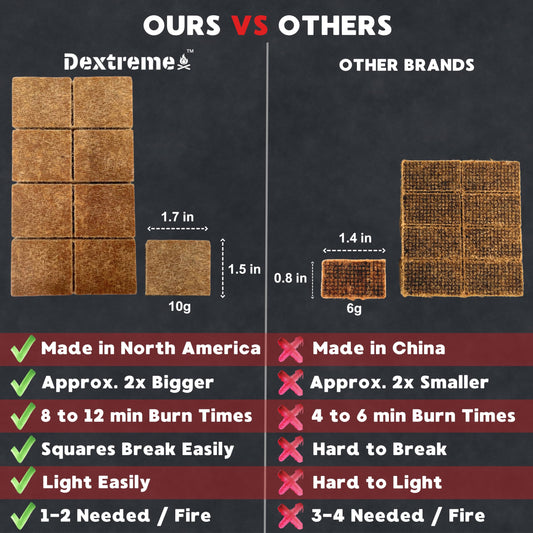 Dextreme Fire Plugs (50) Waterproof Fire Starter for Campfires, Emergencies, Survival, Fire Pits, Grills | 5+ Minute Burn | All Natural | Made in North America