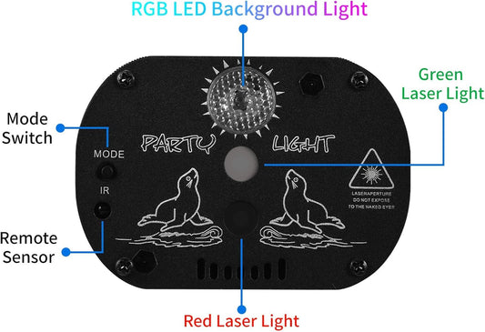 DJ Disco Stage Party Lights, LED Sound Activated Laser Light RGB Flash Strobe Projector with Remote Control for Christmas Halloween Decorations Karaoke Pub KTV Bar Dance Gift Birthday Wedding