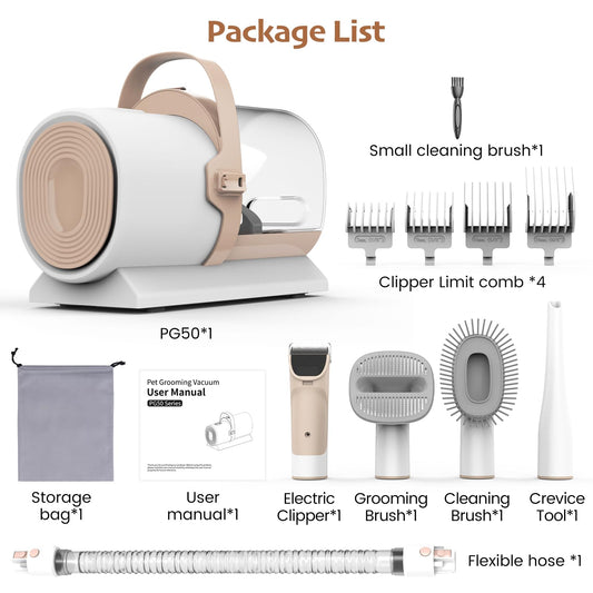 Dog Grooming Vacuum, Pet Grooming Kit with Dog Clippers, 2.5L Dust Cup 11000Pa Dogs Vacuum for Shedding Grooming, 5 Grooming Tools Home Cleaning in 1, Low Noise Pet Grooming Vacuum for Dogs, PG50