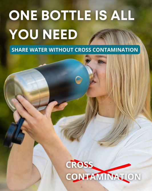Dog Water Bottle for Dog Lovers - 32 oz Stainless Steel Double Wall Insulated Water Bottle with 8 oz Detachable Bowl - Doggy Lover Gift for Hiking, Walking, Travel - “Life is Better” - Dusty Blue