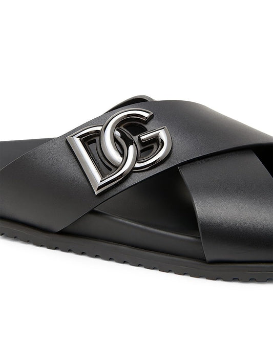 Dolce&Gabbana, Crossed Strap Leather Sandals, 43 (10 US/9 UK), Nero