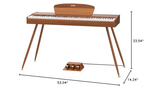 Donner DDP-80 Digital Piano 88 Key Weighted Keyboard, Full-size Electric Piano for Beginners, with Sheet Music Stand, Triple Pedal, Power Adapter, Supports USB-MIDI Connecting, Retro Wood Color