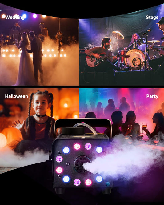 Donner Fog Machine, 600W, 3000CFM, Smoke Machine with 13 LED Light Colors, 1 Wired and 2 Wireless Remote Controls, for Halloween, Wedding, Party and Stage, Indoor Use