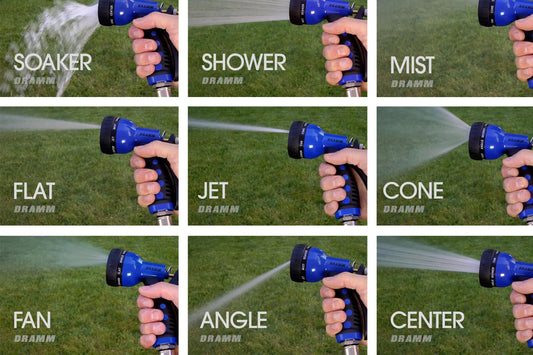 Dramm Revolver Heavy Duty 9 Pattern Quick Click Adjustable Garden Hose Spray Nozzle with Trigger Style Handle, for your Car, Boat, Deck, Sidewalk, Flowers and Young Trees, Green