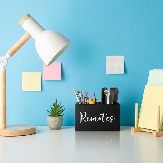 DRASTAR Remote Control Holder, TV Remote Holder, Remote Organizer Caddy for Table, Wooden Remote Box for Nightstand, Black Remote Caddy with 2 Slots
