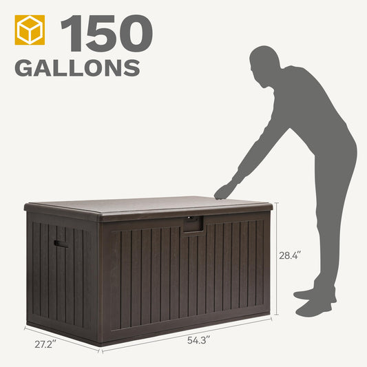 DWVO 150 Gallon Double-Wall Deck Box, XL Large Resin Outdoor Storage Box, Lockable & Waterproof, Double as Seating, 1000lbs Capacity (Brown)