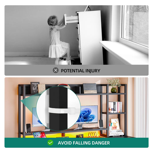 DWVO Computer Desk with Drawers & Hutch, 59.1" Office Desk with Power Outlets & LED Lights, Home Office Desk with Storage Shelves, Black