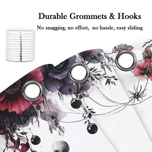 DYNH Halloween Purple Gothic Shower Curtain, Vintage Halloween Horror Dark Gothic Skull Raven Bat Horror Flower Shower Curtain Set Fabric Curtain for Bathroom Decor with 12 Hooks, 72x72In