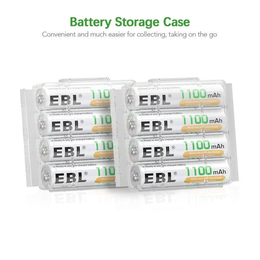 EBL Rechargeable Batteries Combo, AA 2800mAh (10 Pack) and AAA 1100mAh (10 Pack) High Capacity Precharged Ni-MH Rechargeable Batteries with Battery Organizer Storage Box