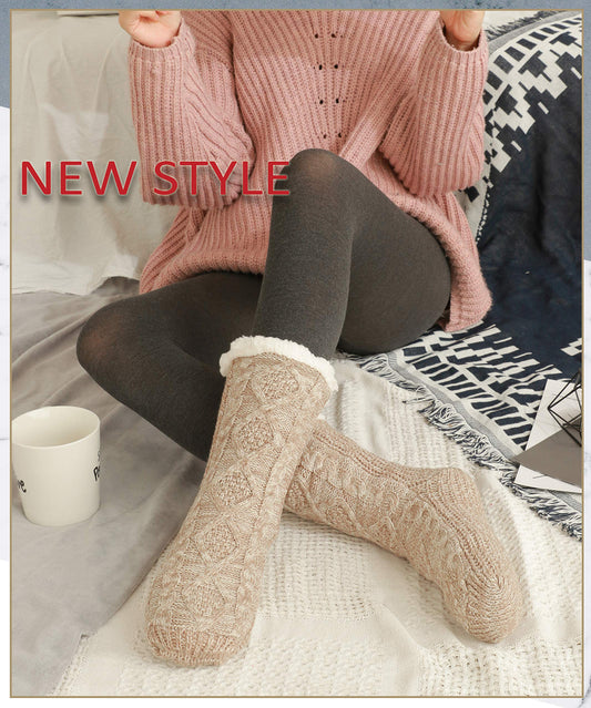 EBMORE Women Slipper Fuzzy Socks Fluffy Cozy Cabin Warm Winter Soft Thick Comfy Fleece Christmas Anti Slip Home Stocking Stuffer(Light Khaki)