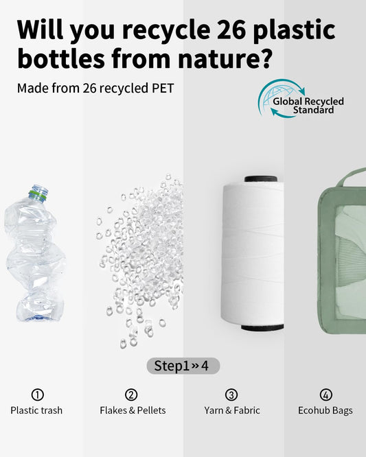 ECOHUB 7 Set Packing Cubes Tear-Resistant Luggage Packing Organizers with Number Icon for Travel Accessories Luggage Suitcase Machine Washable Packing Cubes (Green)