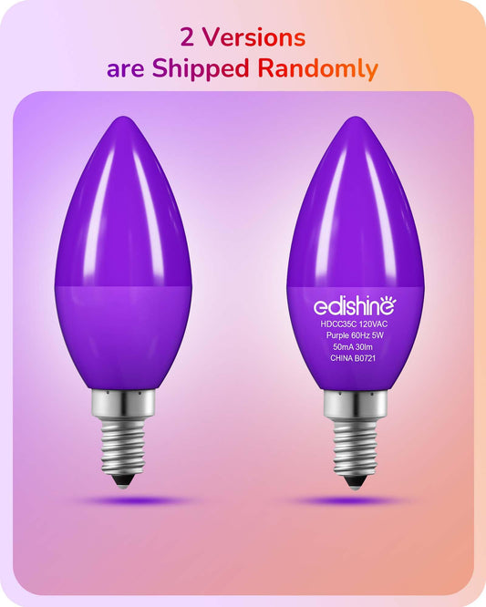 EDISHINE Halloween C35 Purple & Orange Dimmable LED Light Bulb, E12 Candelabra Bulbs, 60 Watt Equivalent, LED Chandelier Bulb, Vintage Candle Light Bulb, Decorations for Halloween, Party, 6 Pack