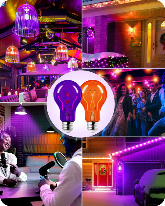 EDISHINE Halloween Purple & Orange Light Bulbs, A19 9W (60W Equivalent) LED Bulbs, E26 Base Orange Colored Light Bulb for Halloween Decorations, Front Porch, 4 Pack, ETL Listed
