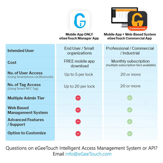 eGeeTouch 4th GEN. Smart Padlock, Weatherproof, Rugged Design for Commercial use, Bluetooth c/w NFC Fob (Long Shackle) (2 Pack)
