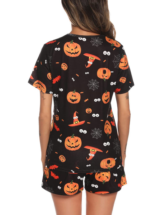 EISHOPEER Women's Halloween Pajamas Cute Print Tee and Shorts Sleepwear Pjs Sets Sleepwear Black M