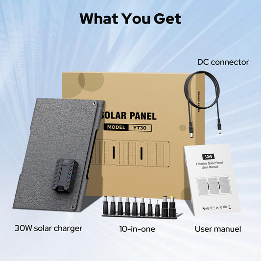 ENOFLO 30W Portable Solar Panel Charger, Foldable ETFE Monocystalline Panel with USB-C USB-A and DC Outputs, IP65 Waterproof, High Conversion for Phones,Power Stations, RV, Outdoor Use