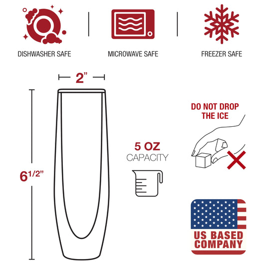 Eparé Double Wall Stemless Champagne Flutes Glass - Set of 2 Lightweight Mimosa and Prosecco Glasses for Bridal Shower, Bridesmaid Gift - Modern Stemless Champagne Glasses