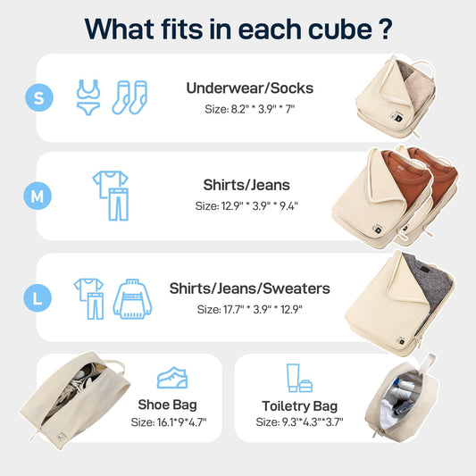 EPICKA 6 Set Ultra-Lightweight Compression Packing Cubes - Water Resistant Durable Travel Organizers with Toiletries Bag, Expandable Travel Accessories for Carry on Luggage, Suitcase (Beige)