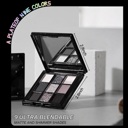 Erinde 9 Color Smokey Eyeshadow Palette, Highly Pigmented Matte & Glitter Shades,Black Silver Gray Eye Shadow Set for Halloween Makeup, Long-Lasting, Waterproof & Blendable, Reversal Star Smokey