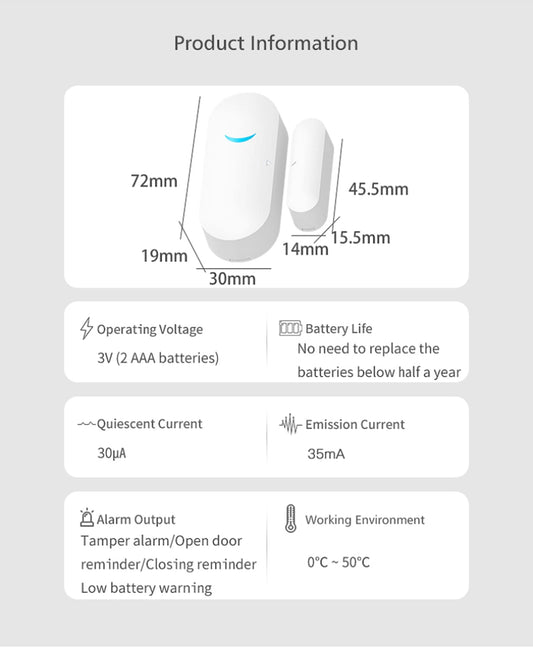 4 Pack WiFi Wireless Door Window Sensor,TUYA Smart Alarm with Free Notification APP Control Home Security Alarm System, Compatible with Alexa, Google Home, Siri