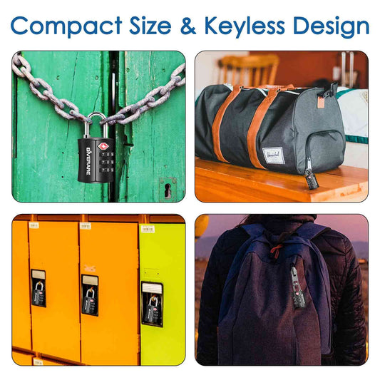 4 Pack TSA Approved Travel Luggage Locks, Combination Lock Keyless, 3-Digit Padlocks, Travel Sentry Accepted Compatible Padlock for Gym Locker, Golf Bag Case, Backpack, Black-by GIVERARE
