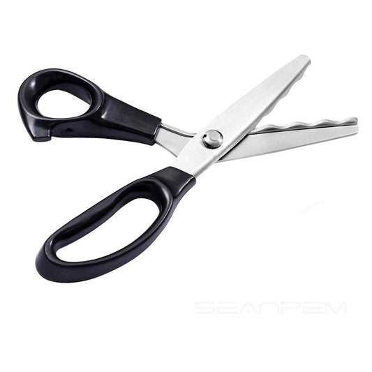 Fabric Pinking Shears, Professional Stainless Steel Handled Scissors, Black, 18mm Scalloped Blade