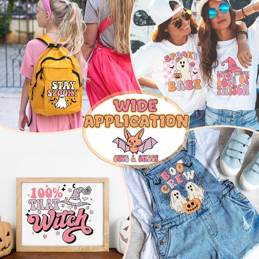 Fainne 12 Halloween Sheets Iron on Decals Watercolor Transfers for Clothing, Halloween Heat Transfer Stickers, Appliques for T-Shirts Jackets DIY Art Decor