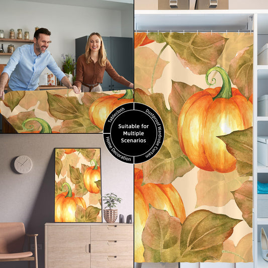 Fall Pumpkin Harvest Autumn Leaves Shower Curtain for Bathroom 72W*72H Inch Farmhouse Vintage Farm Thanksgiving Day Halloween Bathtub Decor Waterproof Polyester Fabric Set with 12 Hooks