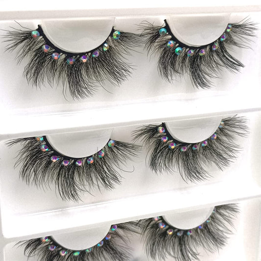 False Eyelashes with Glitter Rhinestones On, Bling Lashes 2023 Sparkle Full Strip Mink Eyelash 4 Pairs… (AF08bling)