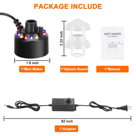 FITNATE Mist Maker, 12 LED Mister Fogger Water Fountain Pond Fog Machine Atomizer Air Humidifier, ultrasonic Mist fogger with Splash Guard, Perfect for Halloween and Other Holidays