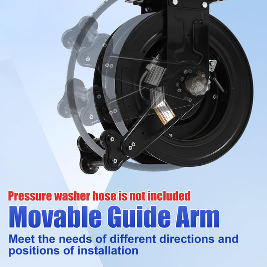 FIXFANS High Pressure Washer Hose Reel for Water/Air/Oil, 3/8" X 50 FT Steel Dual Arm Auto-Retractable Power Wash Hose Reel, Heavy Duty Hose Reel 4000 PSI