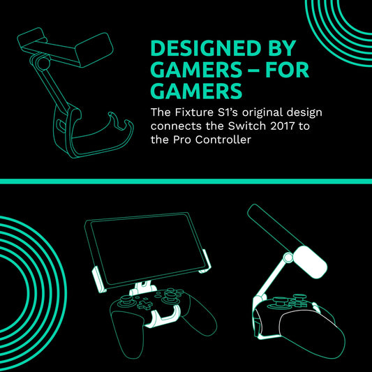 Fixture S1 Gaming Console Monitor and Controller Mount Compatible with Nintendo Switch and Pro Controller, Adjustable Video Game Holder Stand Clip, Gray