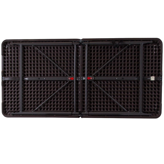 Flash Furniture Mills 4-Foot Height Adjustable Bi-Fold Brown Wood Grain Plastic Folding Table with Carrying Handle