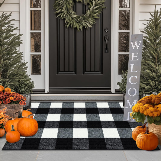 FONEYI Buffalo Plaid Outdoor Rug, 24"x36" Checkered Front Door Mat, Non Slip Absorbent Entryway Rug Doormat Indoor, Washable Outdoor Rugs for Layered Door Mats Front Porch/Farmhouse Black and White