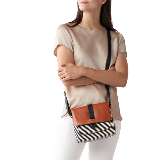 Fossil Women's Kinley Leather & Fabric Small Crossbody Purse Handbag, Black Stripe (Model: ZB7226080)