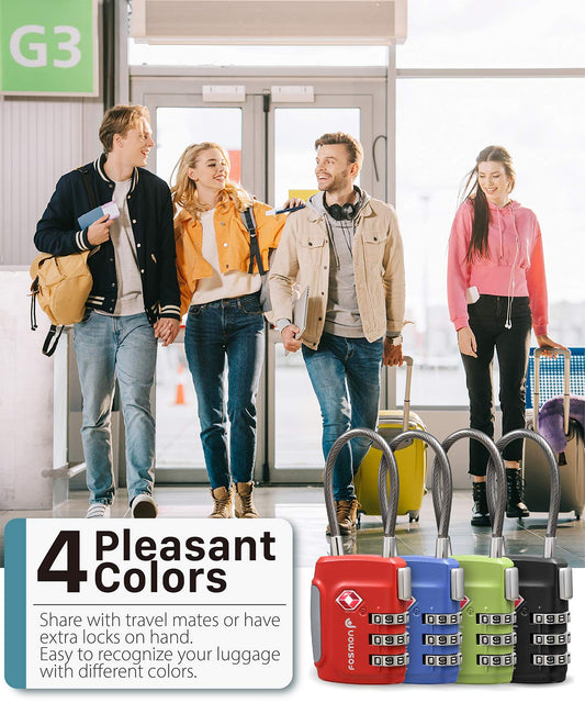 Fosmon TSA Approved Locks for Luggage. Suitcase Locks with Open Alert Indicator, 3 Digit Combination Padlock with Alloy Body for Travel, Backpack Zipper Anti Theft, Locker, Gym, Gun Case, Tent- 4 Pack