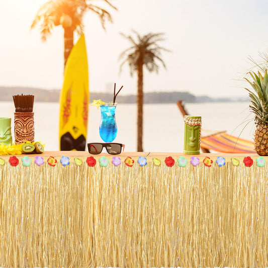 Fovths 6 Pack Luau Grass Table Skirt Natural 9 Feet x 29.5 Inch Hawaiian Table Skirt for Tropical Hawaiian Party Decorations Luau Party Costume Party, Straw Yellow