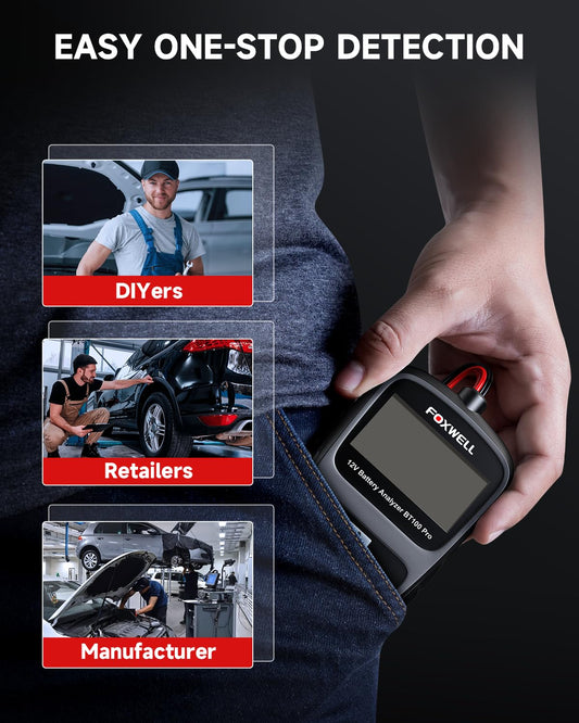 FOXWELL BT100 PRO 12V Car Battery Tester, 100-1100CCA Battery Load Tester, Automotive Digital Analyzer for Cars Trucks Motorcycles SUVs and Marine