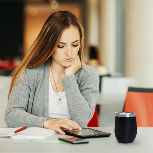 FristChoice 12 oz Insulated Wine Tumbler with Lid and Straw,Stainless Steel Stemless Wine Tumbler Glasses Double Wall Vacuum Wine Cups Tumbler Bulk for Coffee,Champaign,Cocktail(Black,1)