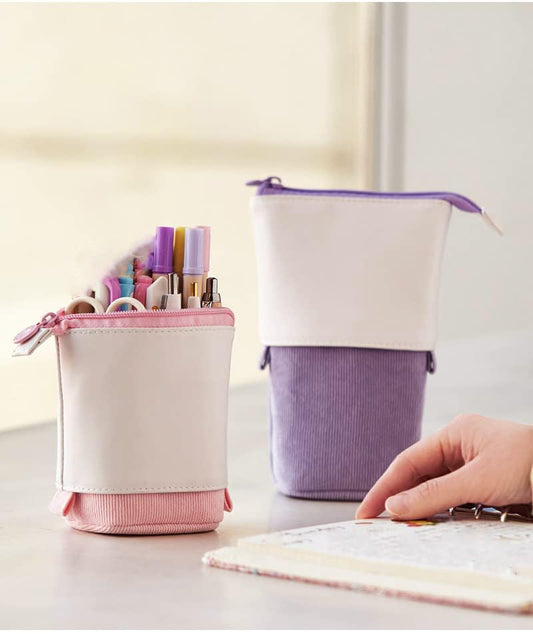 Friinder Telescopic Pencil Bag Pen Holder Stationery Case, PU Corduroy Stand-up Retractable Transformer Bag Colorful Organizer, Great for Christmas Holiday (Green)