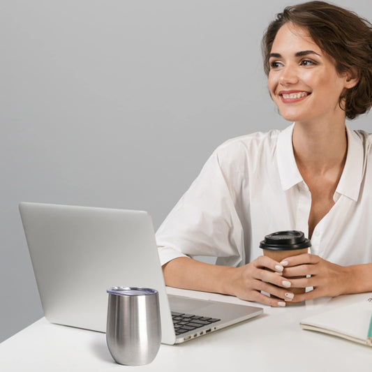 FristChoice 12 oz Insulated Wine Tumbler with Lid and Straw,Stainless Steel Stemless Wine Tumbler Glasses Double Wall Vacuum Wine Cups Tumbler for Coffee,Champaign,Cocktail,Office(Silver,1)