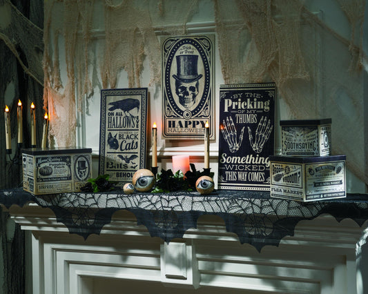 FUN LITTLE TOYS Halloween Decorations Indoor - Mantel with String Lights Lace Spiderweb Decor Inside for Home Party Supplies (18 x 96 inch)