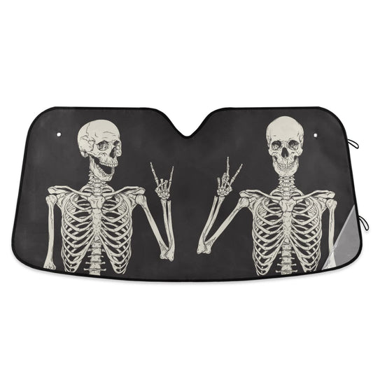Funny Skull Car Windshield Sunshade - Skeleton Car Shade Skull Sun Shade Black Blocks UV Rays Visor Protector Accordion Folding Sun Reflector Auto Sunshade for Truck SUV to Keep Your Vehicle Cool