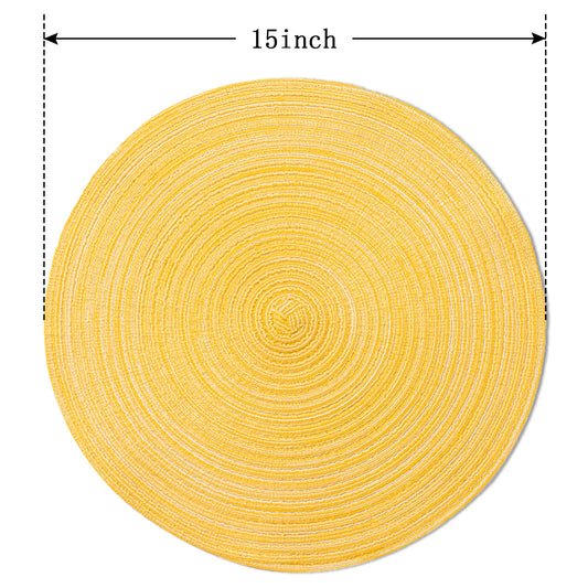 FunWheat Round Braided Placemats Set of 6 Place mats for Dining Tables Woven Heat Resistant Table Mats 15 inch (Yellow)
