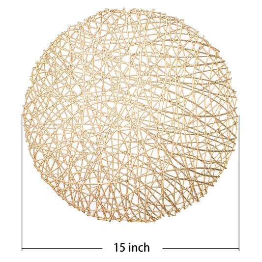 FunWheat Round Gold Placemats Placemat Set of 6 Hollow Out Place mats Heat-Resistant Shining 15 inches Table Mat Decorative Gift (Nest Gold)