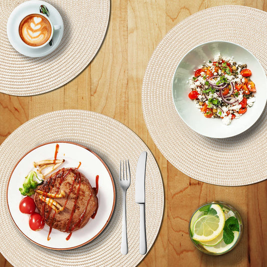 FunWheat Round Braided Placemats Set of 6 Table Mats for Dining Tables Woven Washable Non-Slip Place mats 15 inch for Easter Decoration(Ivory Beige, 6pcs)