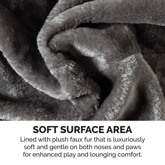 Furhaven Pet Dog Bed Cover - Plush Faux Fur & Velvet L Shaped Chaise Lounge Living Room Corner Couch Pet Bed Replacement Cover for Dogs & Cats, Platinum Gray, Jumbo