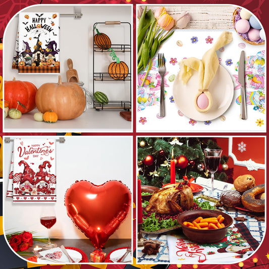 FuWeave 12 Pcs Seasonal Kitchen Towels Set for All Holidays Hand Dish Tea Towels Fall Halloween Christmas Absorbent Dishcloths Housewarming Gift for Cooking Kitchen Bathroom(Gnome Style,Bright Color)
